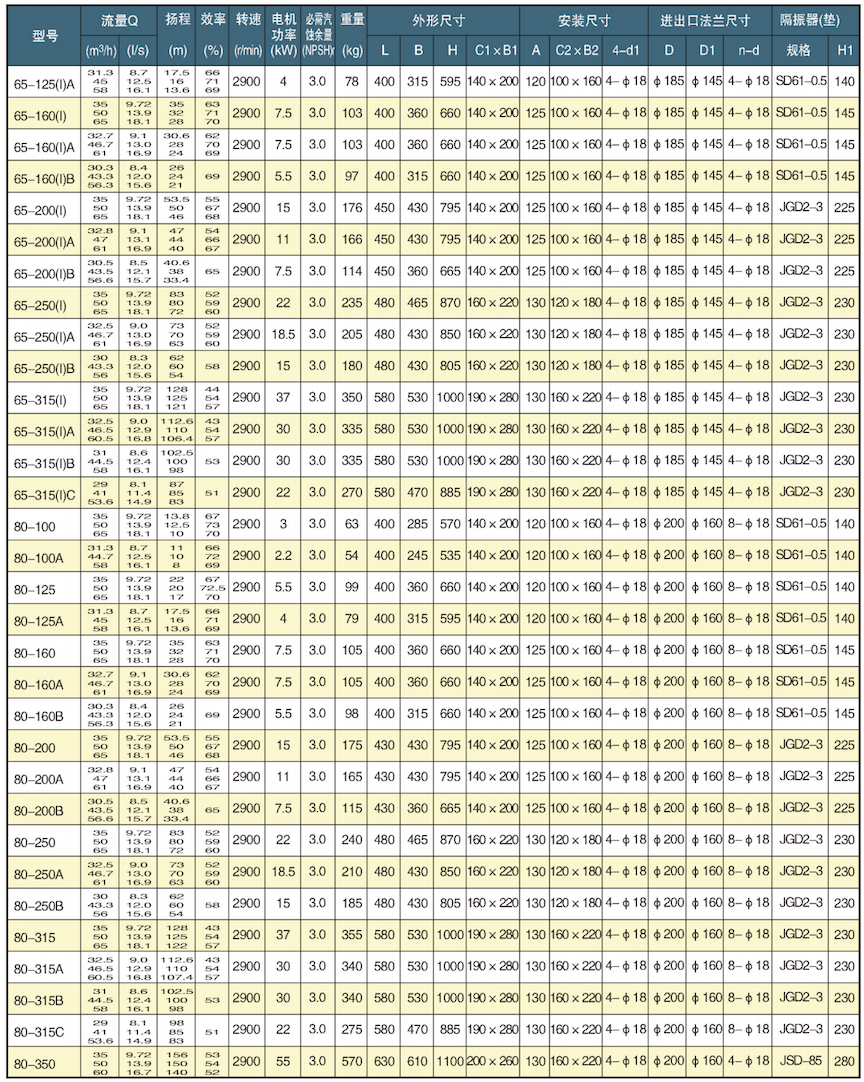 3、IHG型立式管道化工泵,供输送不含固体颗粒,具有腐蚀性,粘度类似于水的液体,适用于石油、化工、冶金、电力、造纸、食品制药和合成纤维等部门,使用温度为-20°C~ 120C