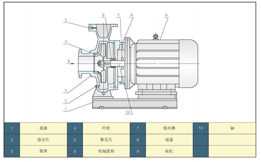 5.结构独特。泵体下侧设有放水孔,进、出口法兰设有取压孔,能确保泵的正常使用和维护