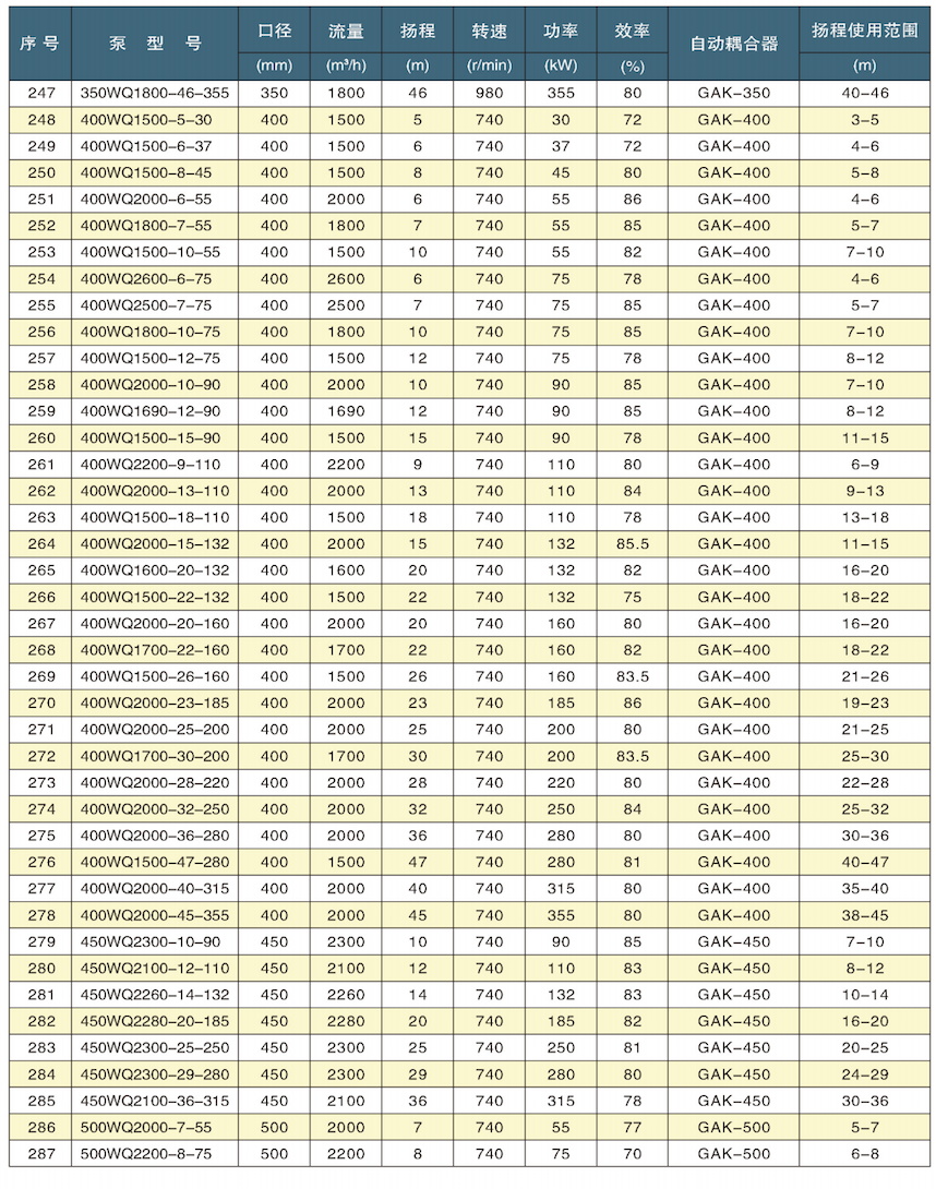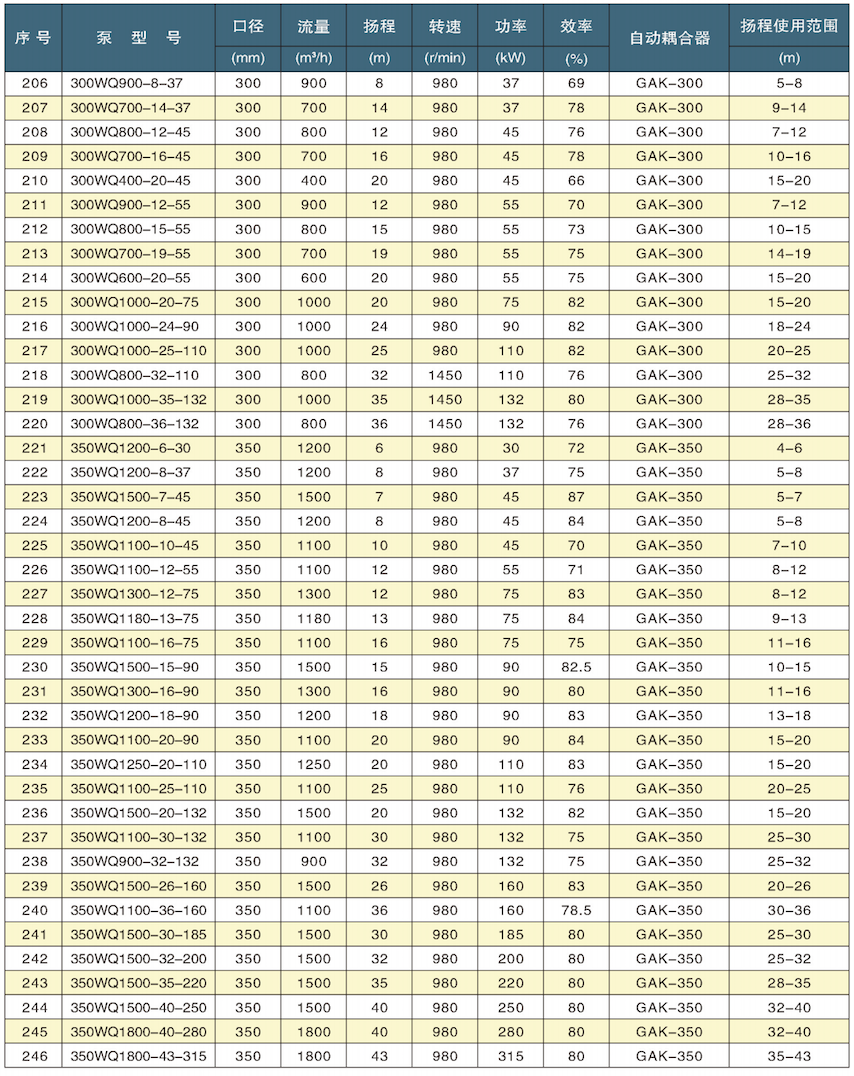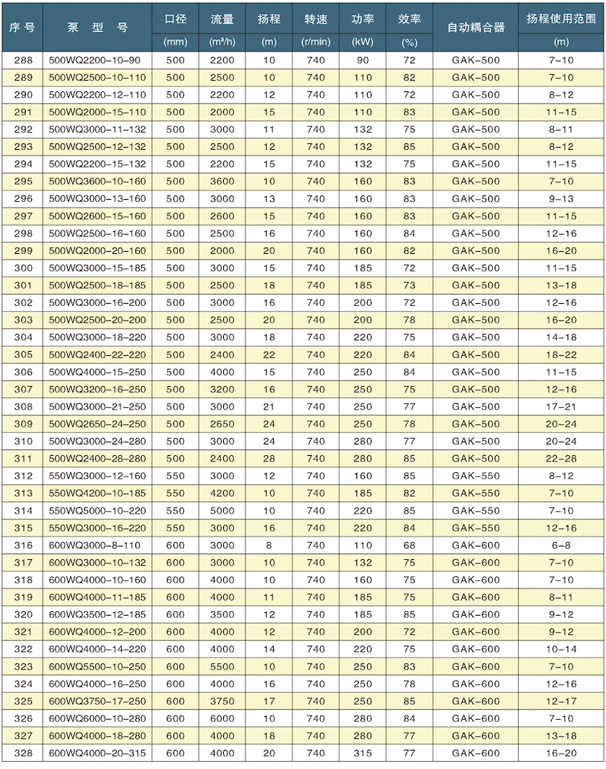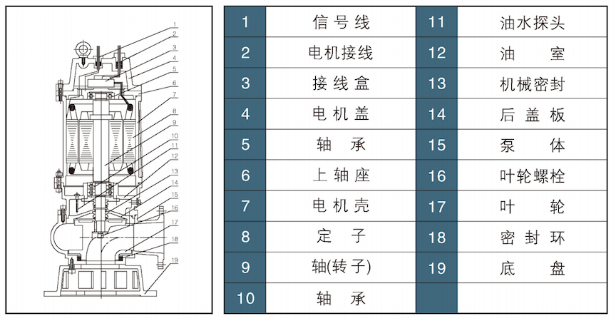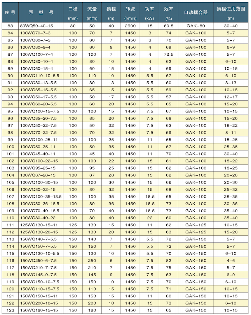 1、采用大流道抗堵塞水力部件设计,大大提高污物通过能力,能有效地通过泵口径的5倍纤维物质和直径为泵口径约50%的固体颗。