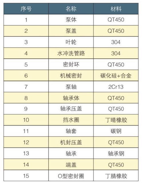 轴封采用机械密封结构,确保做到滴水不漏。泵体、泵盖均采用树脂砂造型,保证了铸件外形和流道尺寸精确、表面光滑,提高了水力效率。泵选用高效的水力模型,提高了泵的水力效率,改善了泵的汽蚀性能,使泵运行更加可靠耐用,延长了泵的使用寿命。