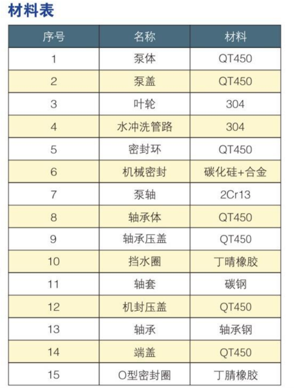轴封采用机械密封结构,确保做到滴水不漏。泵体、泵盖均采用树脂砂造型,保证了铸件外形和流道尺寸精确、表面光滑,提高了水力效率。泵选用高效的水力模型,提高了泵的水力效率,改善了泵的汽蚀性能,使泵运行更加可靠耐用,延长了泵的使用寿命
