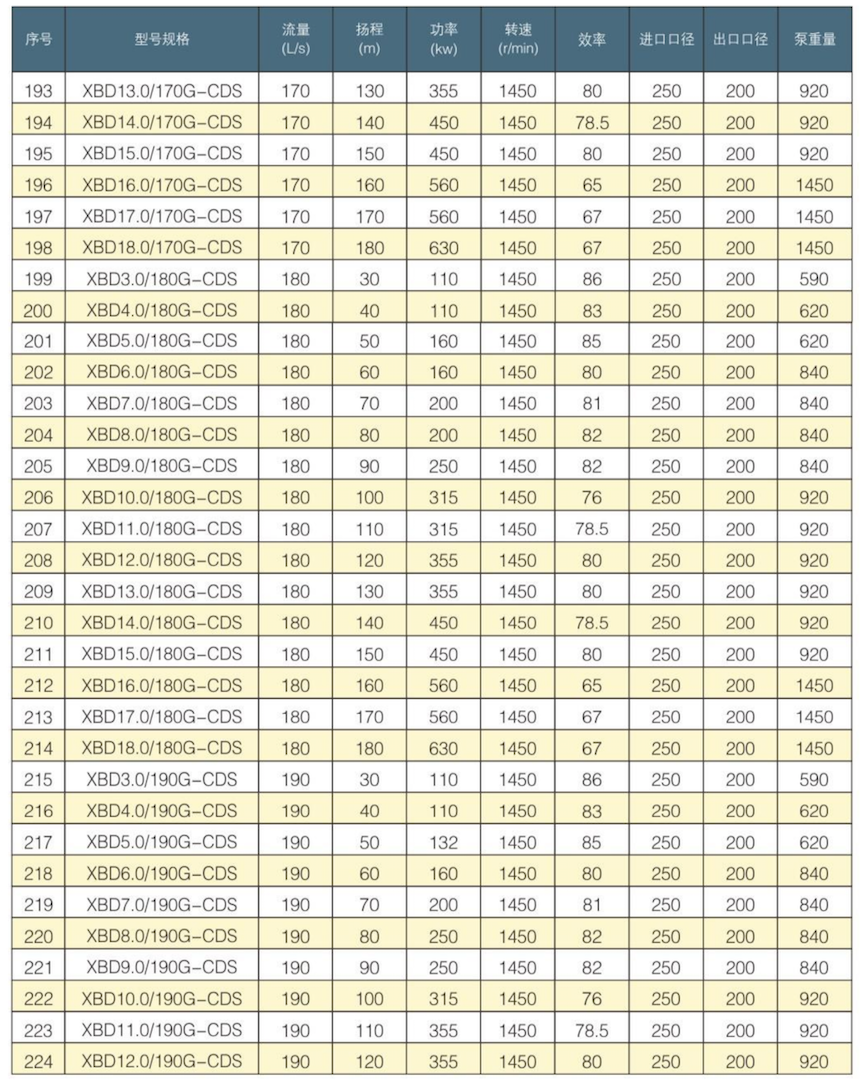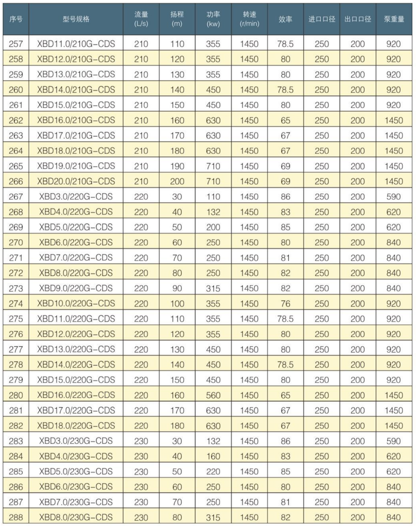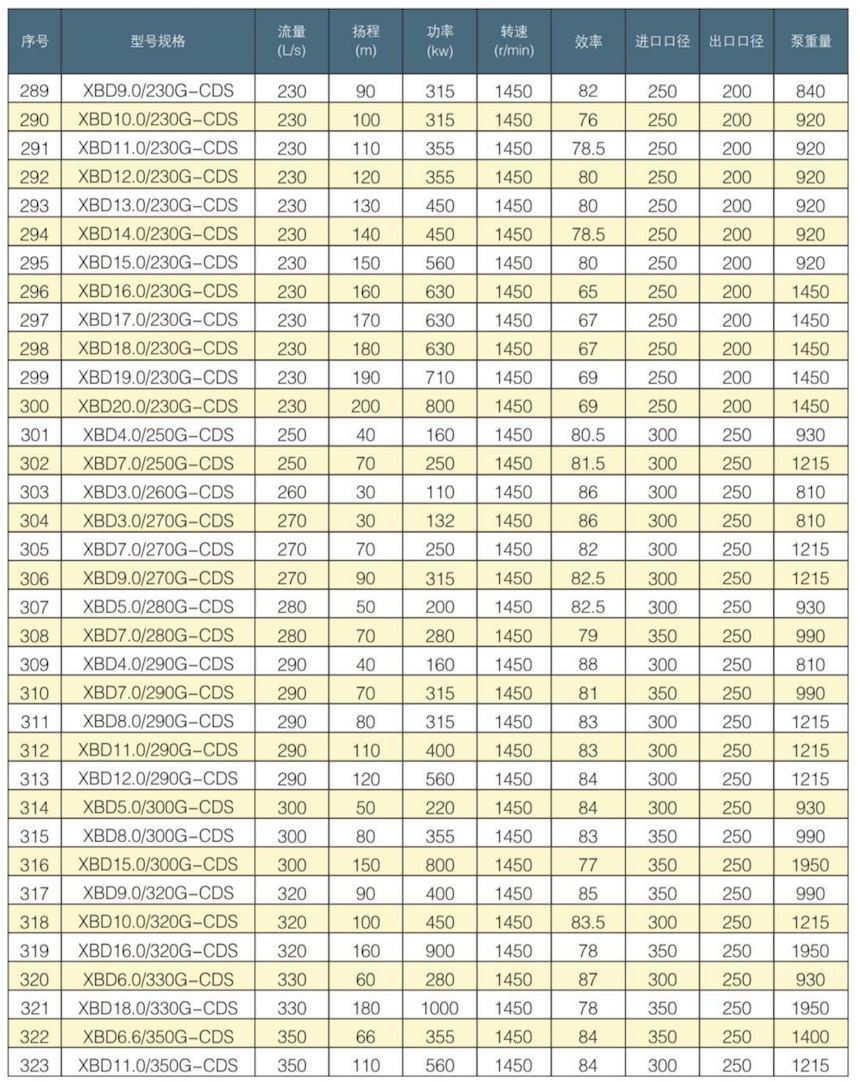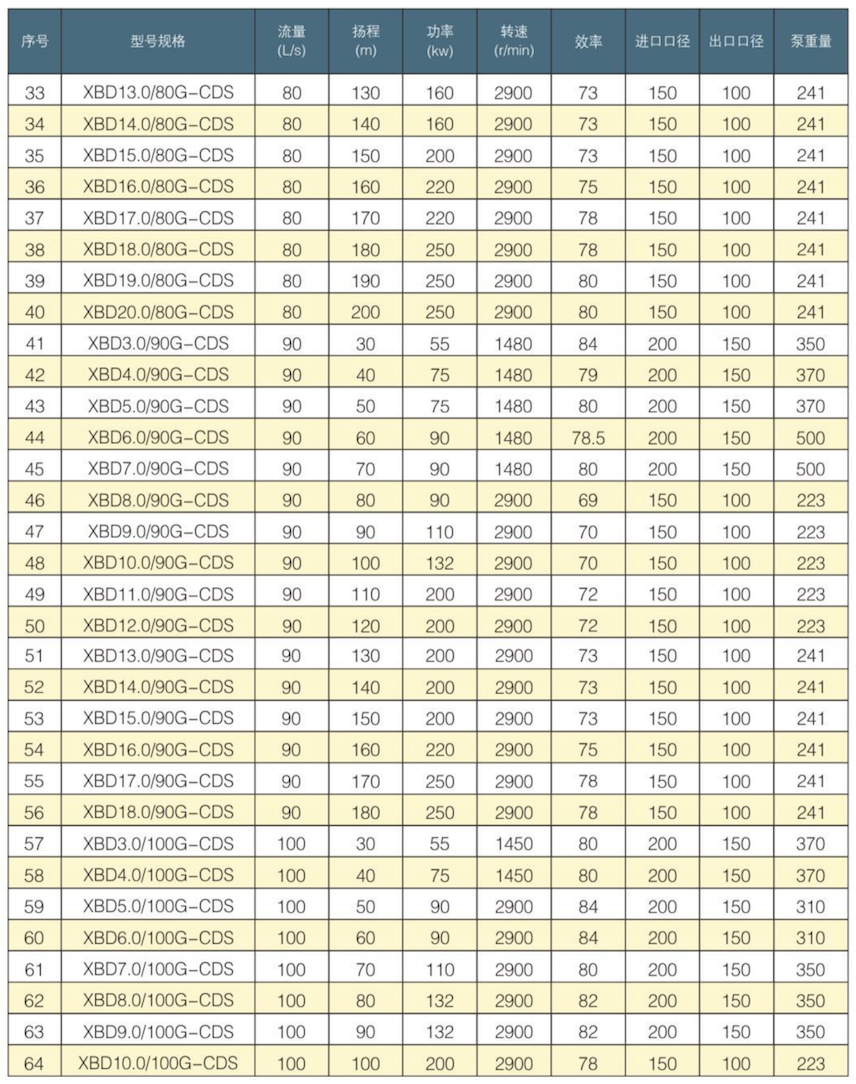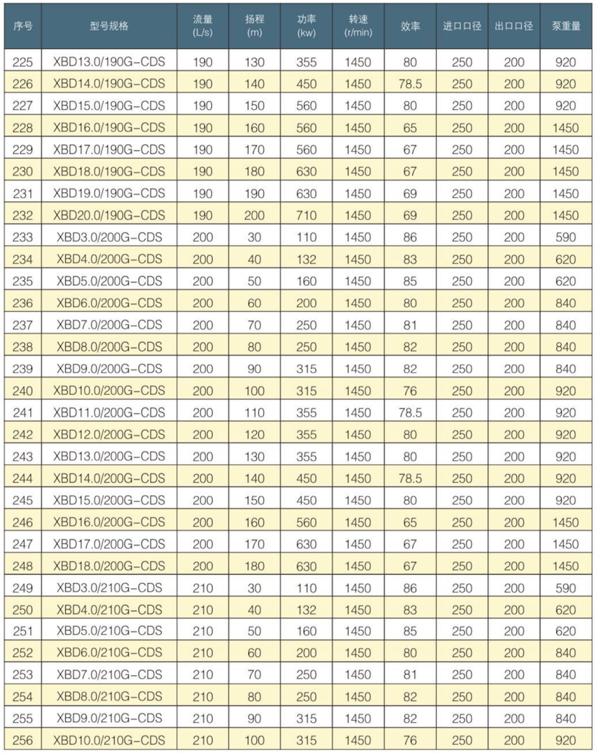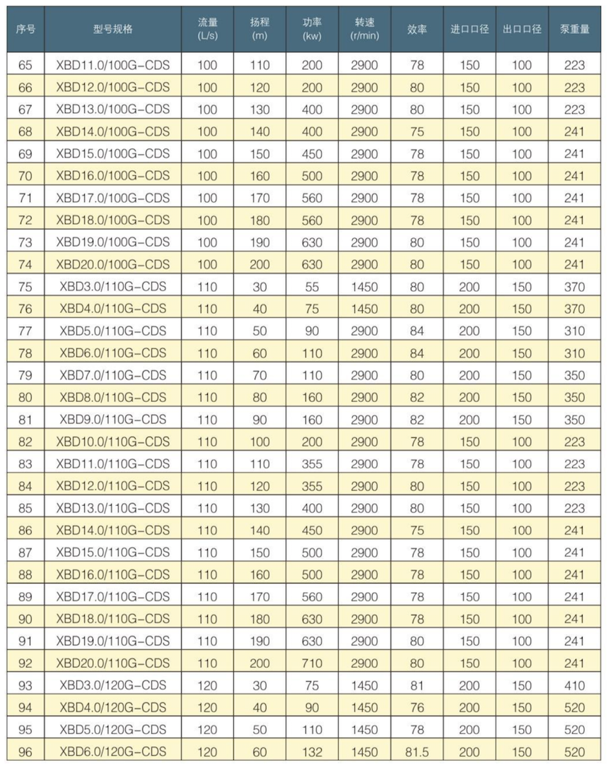 XBD-CDS型水平中开双吸消防泵组采用公司主产的CDOW型泵结构,具有性能可靠、高效节能、维修方便,使用寿命长等显著特点,自投入市场以来深受用户青睐。 泵采用直线型设计并带加强筋使泵结构更加合理、外形美观、安装稳定。 较短的轴承间距提高了轴的刚性,确保了机组运转平稳、振动小、噪声低.